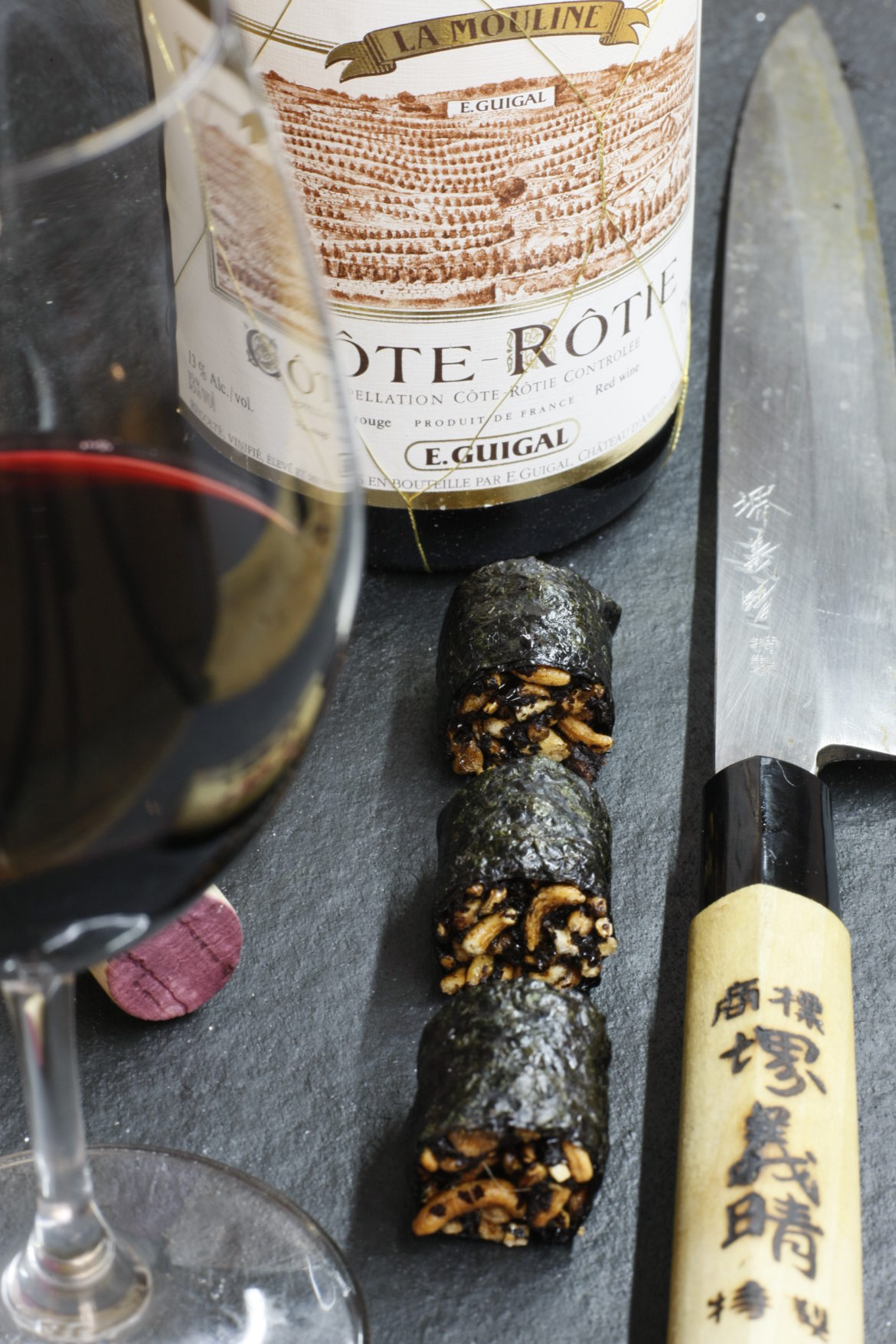 Ever since returning from Catalonia, the idea of working with nori haunted me because, among the other ingredients with which it shares a common molecular profile are black olives and black pepper, and whenever one talks about black olives and black pepper, one invariably also talks about syrah/shiraz based red wines, as well as coffee, an harmonic relative that has the added benefit of softening red wine tannins.