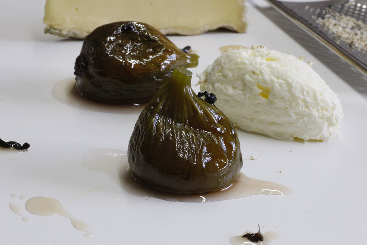 - Extraire la chantilly de Saint Nectaire et la mettre dans un contenant. À l’aide d’une cuillère à soupe, faire une quenelle par convive et déposer à côté des figues.