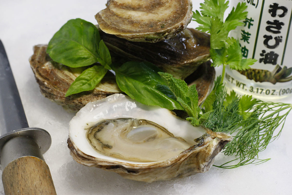 - En suivant une gradation par rapport à la puissance de l’aromate, placer dans une huître quelques brins d’aneth, dans sa voisine la coriandre, dans une autre le basilic, enfin la menthe et pour finir quelques gouttes d’huile de wasabi.