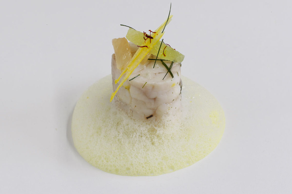 Comme l’élaboration singulière du thé vert japonais gyokuro lui procure une grande complexité de composés volatils de la famille des caroténoïdes, à l’image des molécules qui signent la couleur et le profil aromatique du safran, nous avons mis ce thé unique à l’avant-scène de la composition de cette recette au « goût de froid ». C’est que le gyokuro fait partie aussi des aliments au « goût de froid ». Ce dernier est provoqué par la présence de certaines molécules qui, comme le menthol de la menthe, abaissent la température de la bouche et des papilles lorsque dégustés. Nous sommes donc dans deux zones aromatiques, où safran et « goût de froid » se chevauchent. N’hésitez pas à interchanger certains aliments de cette recette en pigeant dans la liste des aliments complémentaires de ces deux catégories d’aliments.