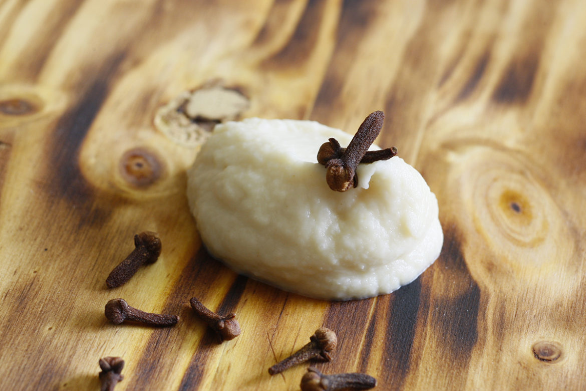 - Une fois que les éléments sont prêts, placer les cubes, la crème et la poudre de clous de girofle dans un robot culinaire. Réduire en une purée lisse.
