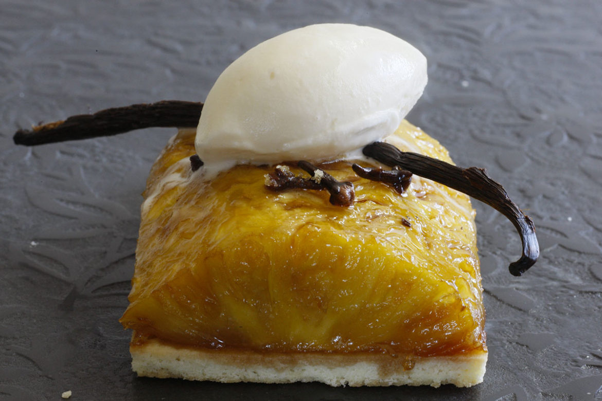 - Déposer les morceaux d’ananas confits sur les fonds de tartes et servir avec votre crème glacée vanille préférée.